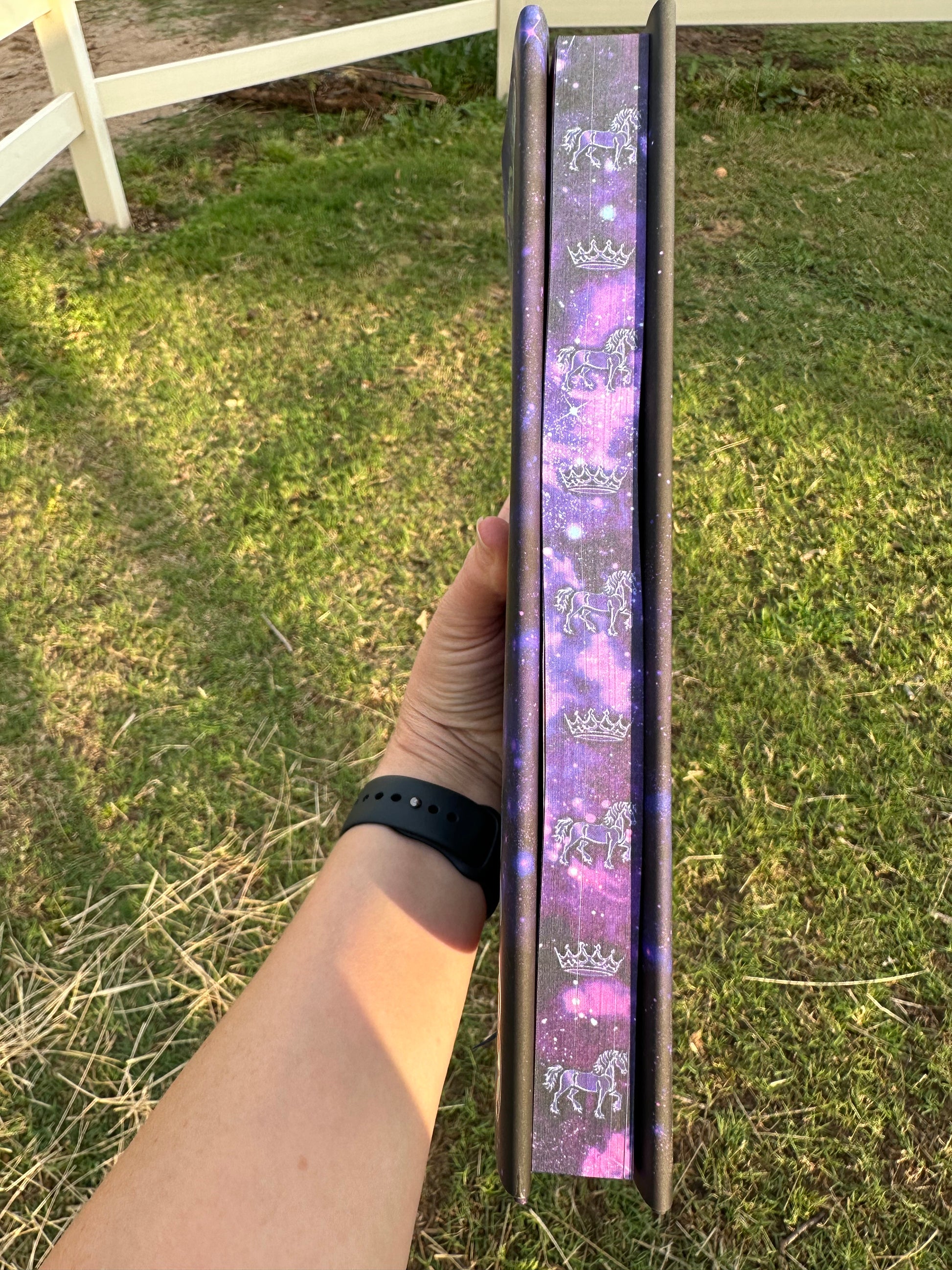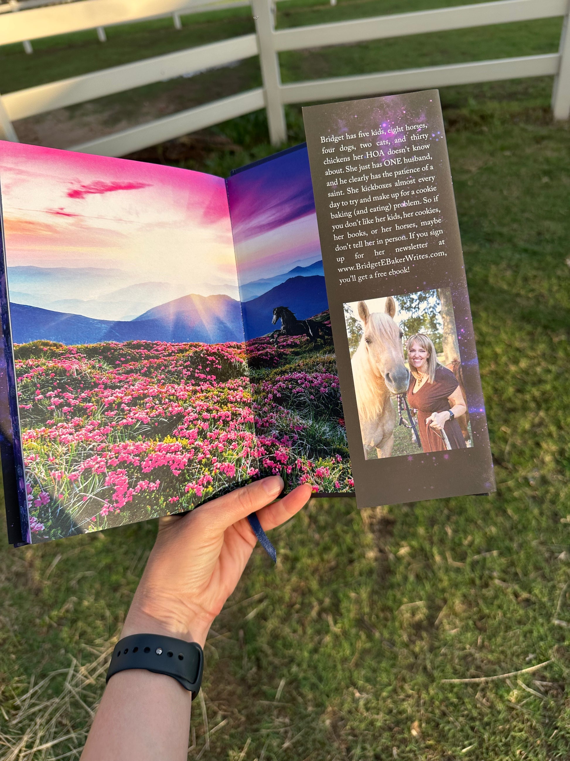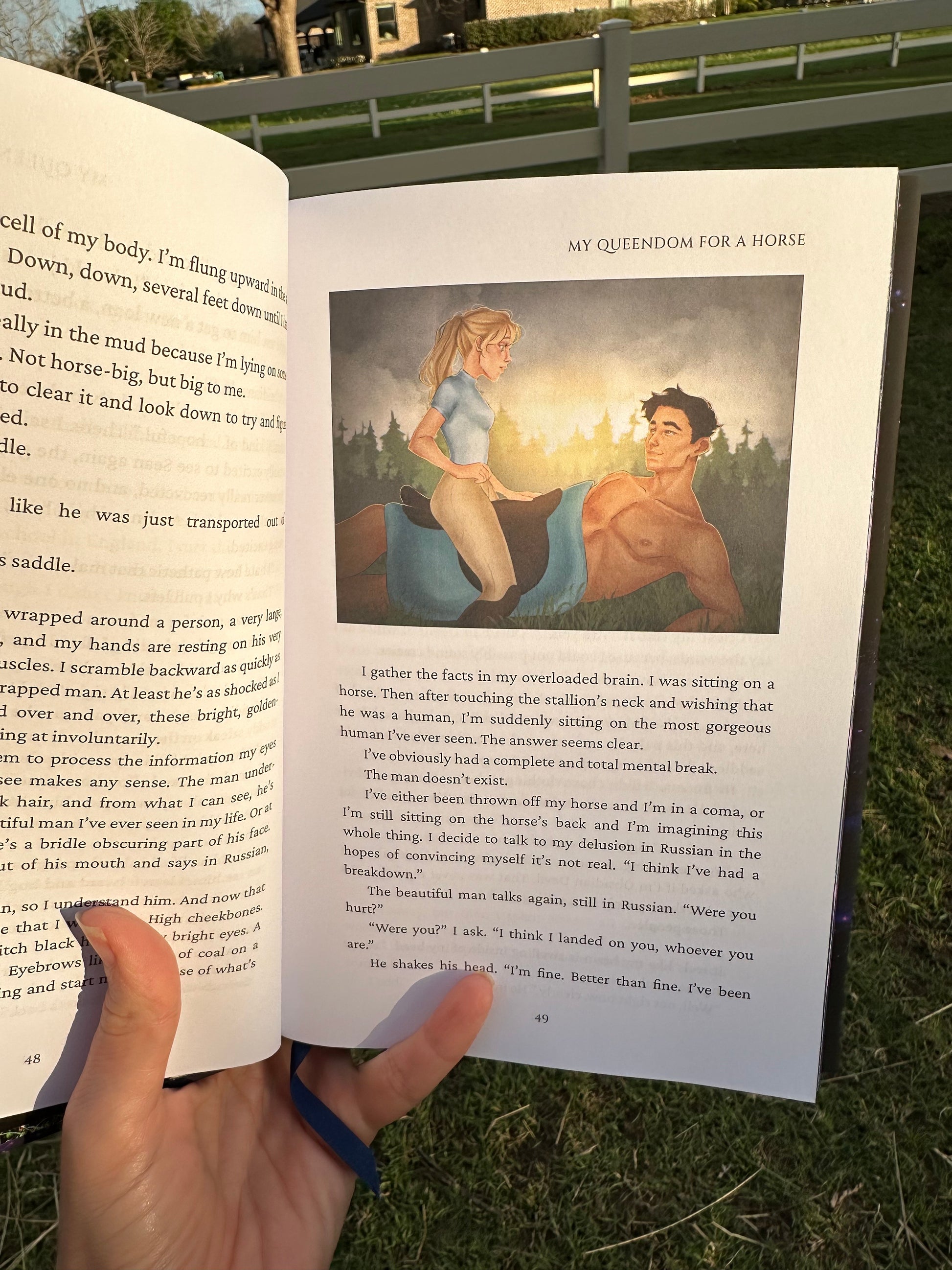 WHAT IS IT? A signed, hardcover, VERY special edition of My Queendom for a Horse, Bridget E. Baker's best-selling horse-shifter, enemies-to-lovers paranormal romance. This hardcover features holographic foil on the special edition dust jacket cover and the hardcase cover. It features custom sprayed edges with crowns and horses, a bookmark, and more than 42 interior pages of color artwork inside. Every odd chapter has a unique chapter header. Every even chapter header has a full color chapter header. The stunning end papers and the custom artwork will blow you away.